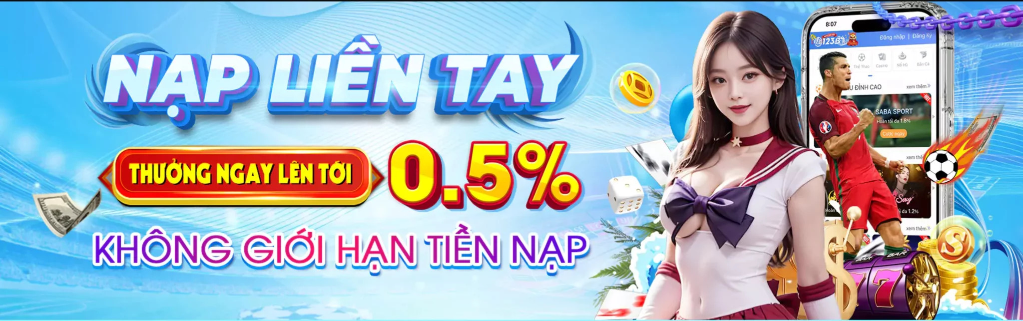 Chương trình hoàn thưởng đặc biệt áp dụng cho hội viên tham gia nổ hũ và bắn cá, tỷ lệ hoàn tối đa 12% cho mọi giao dịch nạp từ 5.001K trở lên. Tiền thưởng xét duyệt tự động, cộng vào ví sau ba vòng cược mà không cần liên hệ CSKH. Ưu đãi không giới hạn thời gian, áp dụng toàn hệ thống 123B.